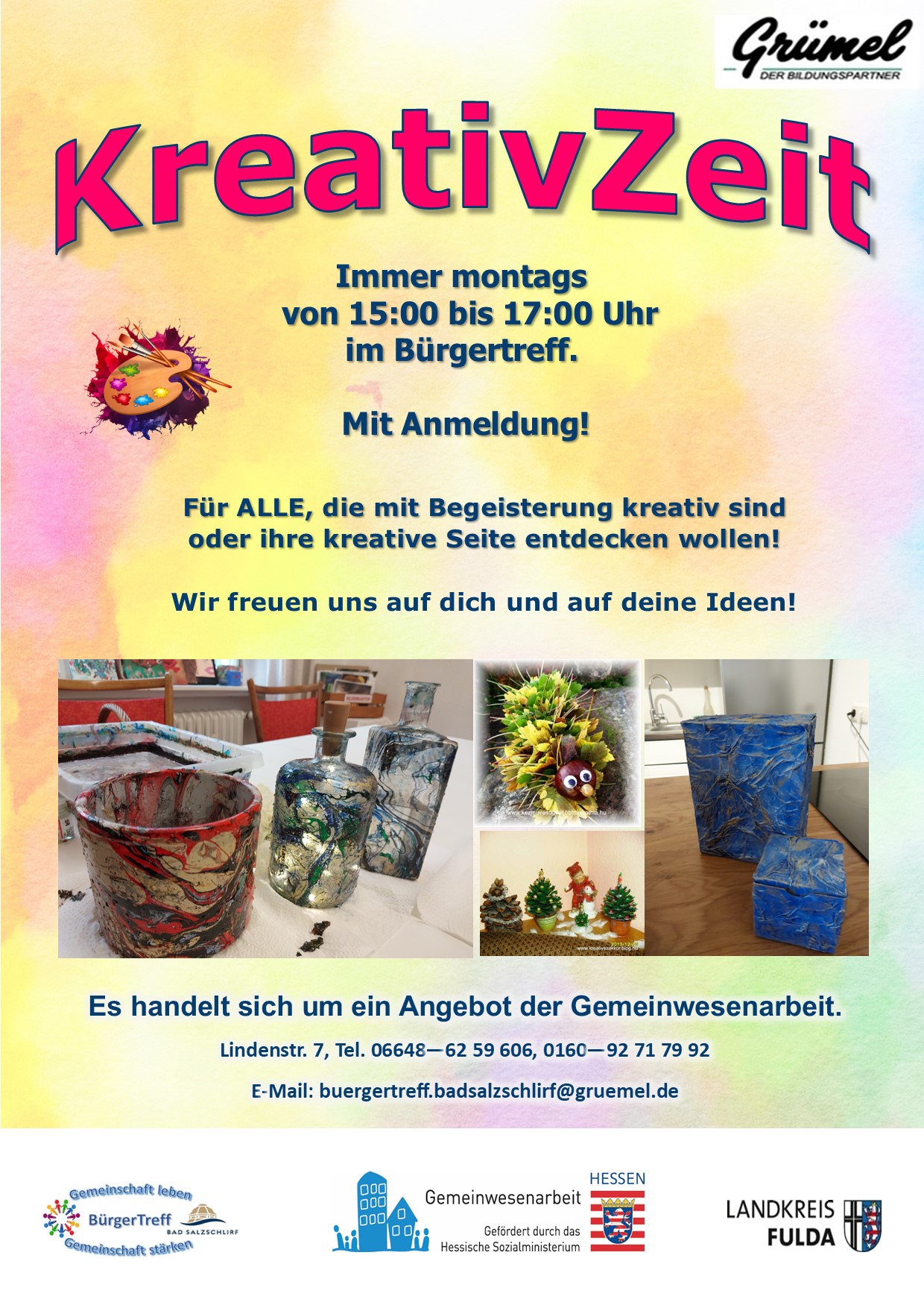Alle Angebote und Aktivitäten finden im Rahmen der Gemeinwesenarbeit Hessen, gefördert durch das Hessische Ministerium für Soziales und Integration sowie dem Landkreis Fulda statt.